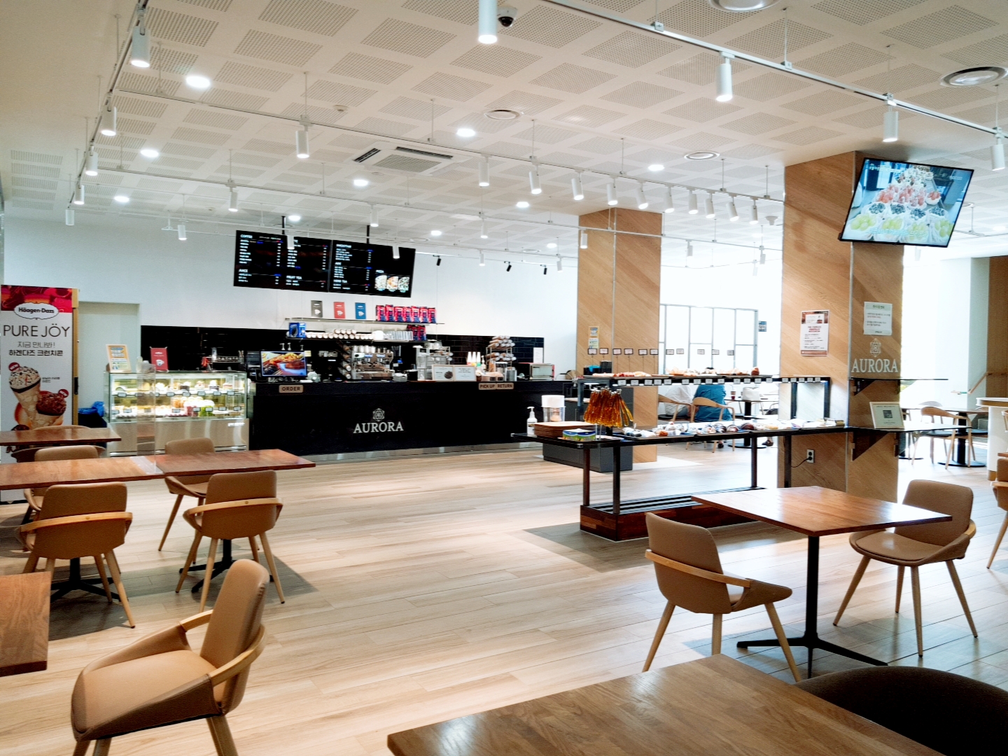 서관 1층에 위치한 베이커리카페 오로라라는 유명한 베이커리 체인이에요. 최고급 프랑스산 밀과 천연버터등 좋은 재료를 사용하여 모든 빵을 당일 수제로 생산하는 곳이랍니다. (참고로 남양주시 삼패동에도 이 오로라가 있는데 거기 한강뷰가 멋져요)
