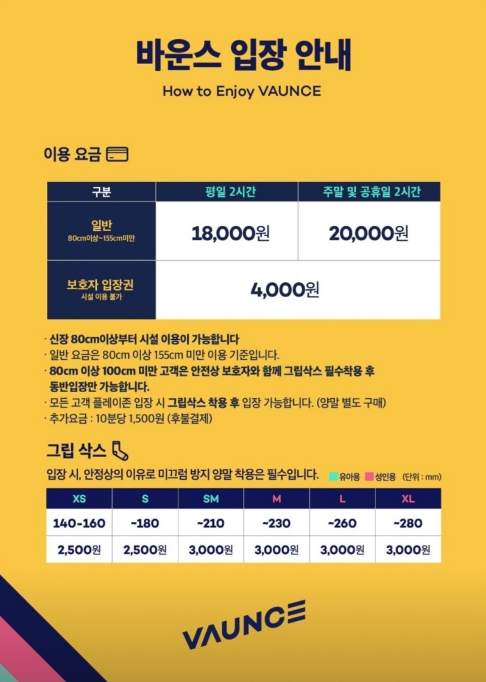 평일 2시간에 18,000원, 주말 2시간은 20,000원, 보호자는 요일 상관 없이 4,000원인데, 이용 시간 추가될 경우 10분에 1,500원씩 요금이 부가되고요. 결제는 퇴장하실 때 해주시면 됩니다.