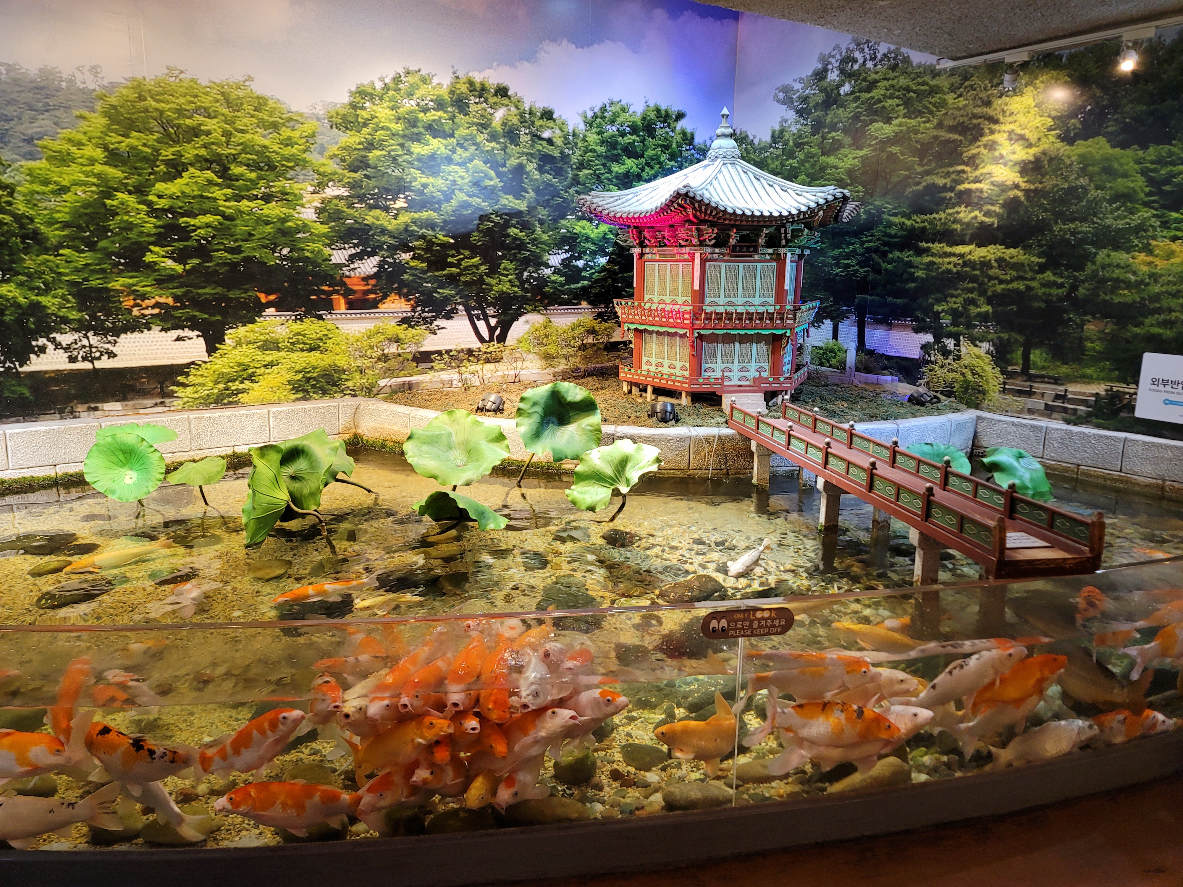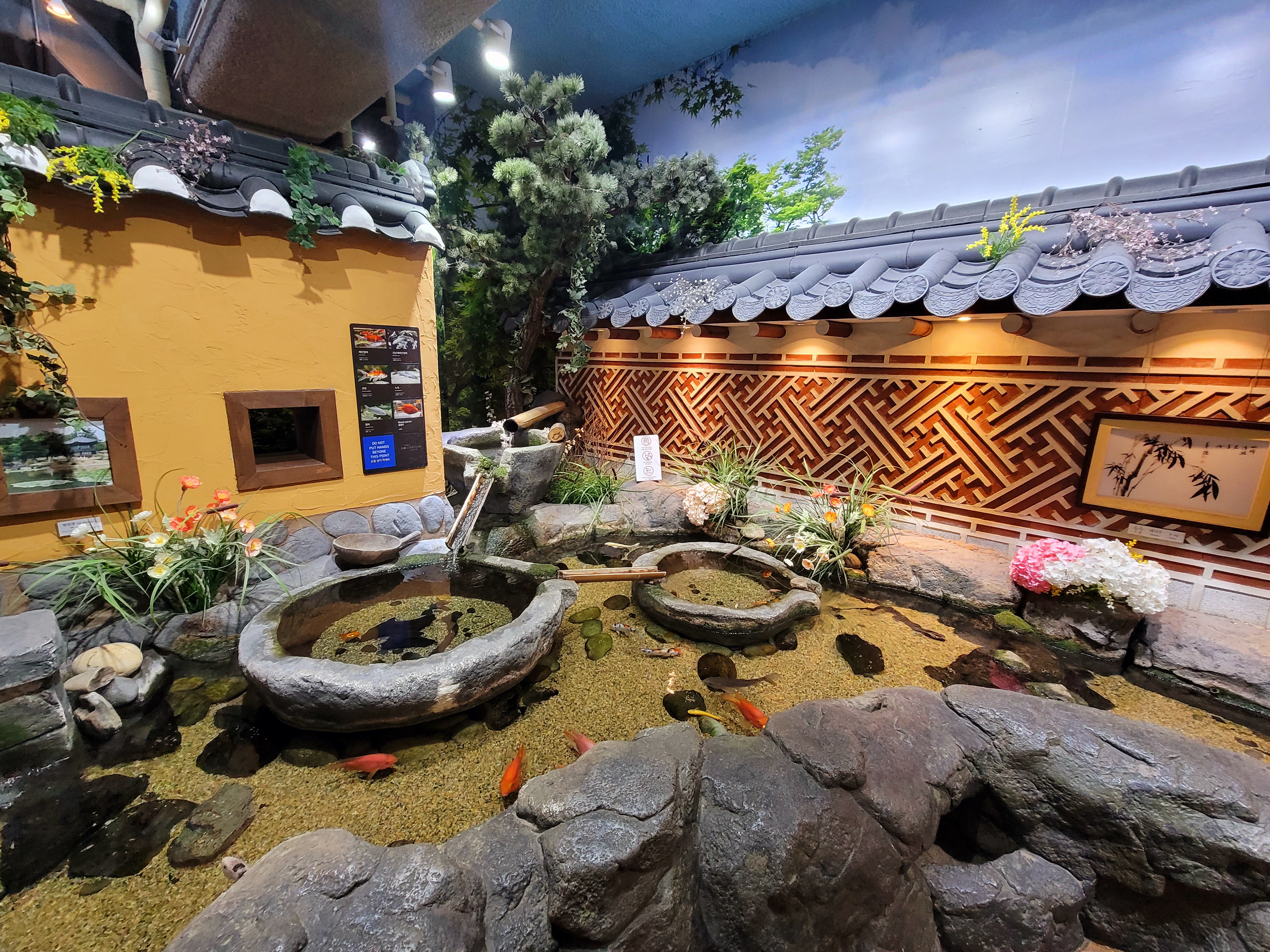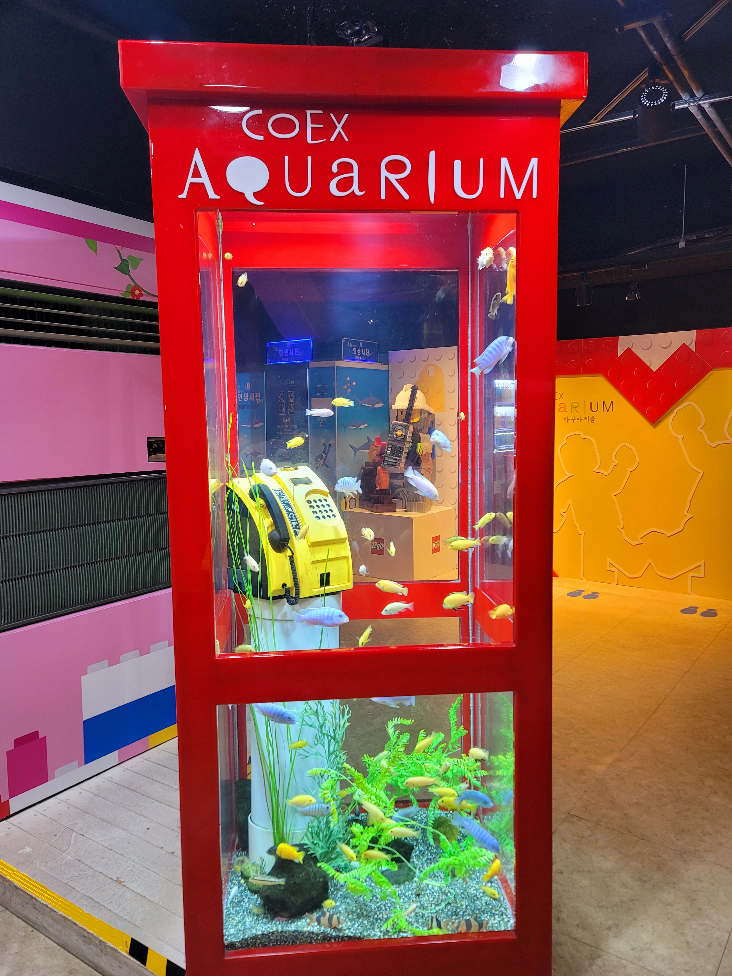 외국인들이 참 많다고 그랬잖아요. 외국인 친구가 아쿠아리움에 가겠다고 한다면 저는 롯데월드, 주렁주렁보다 코엑스에 데려올 것 같아요. 한국의 기와를 아쿠아리움에서 보여줄 수 있을 줄이야? 그리고 듬성듬성 어설프긴 하지만 꽃장식도 제법 멋스러운 것 같고요.