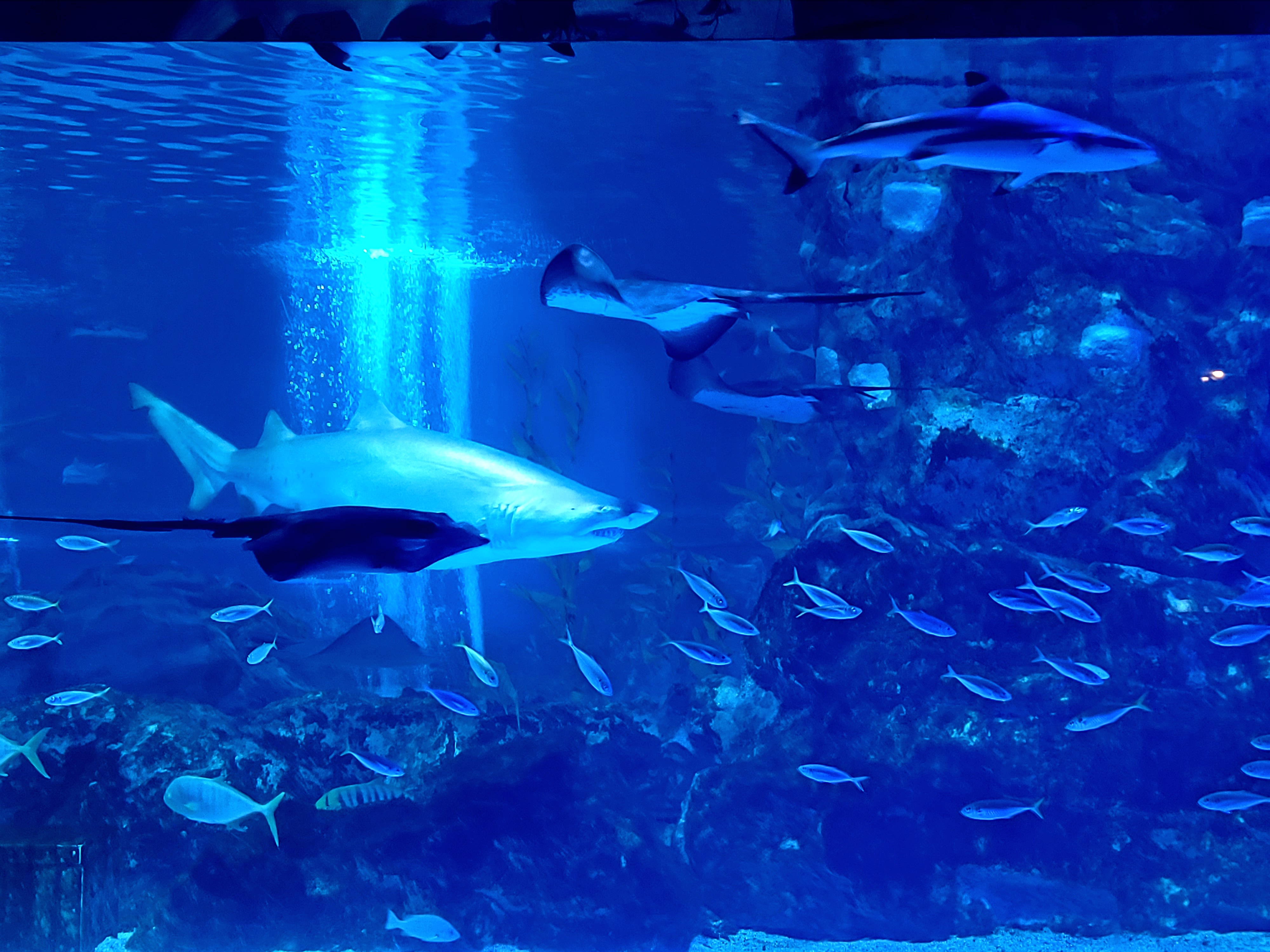 여기도 롯데월드 아쿠아리움처럼 해저터널이 있어요. 사진에 가오리밖에 없어 아쉬운데 당연히 다양한 생물들이 왔다갔다 하고 있고요. 추억사진 남기기에 제격인 곳이죠? :)