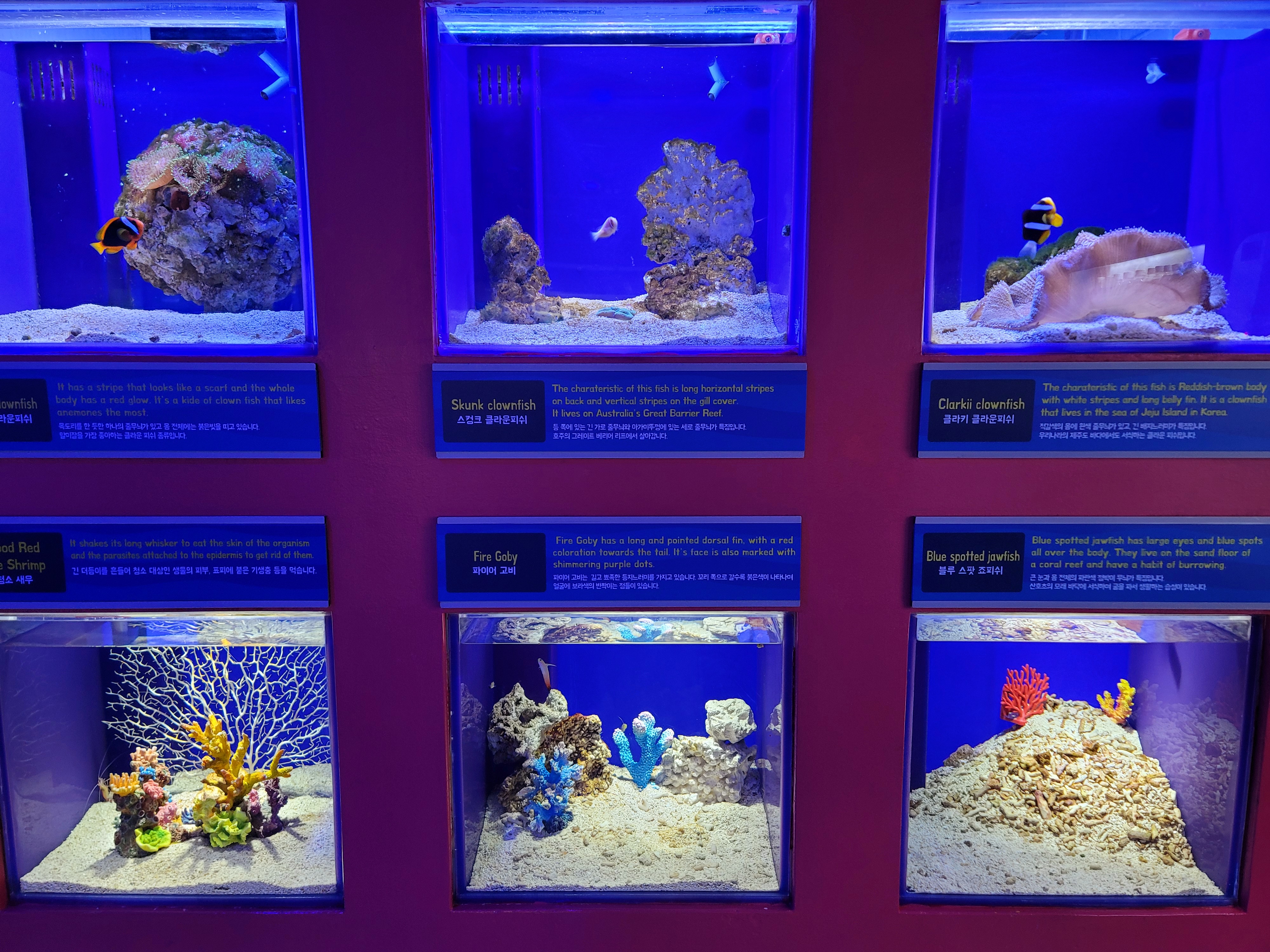 하나 하나 다 다르죠. 서식하는 곳을 대충 만들지 않았더라고요. 물고기 뿐만 아니라 그들이 머무는 자리를 보는 재미도 쏠쏠했어요.