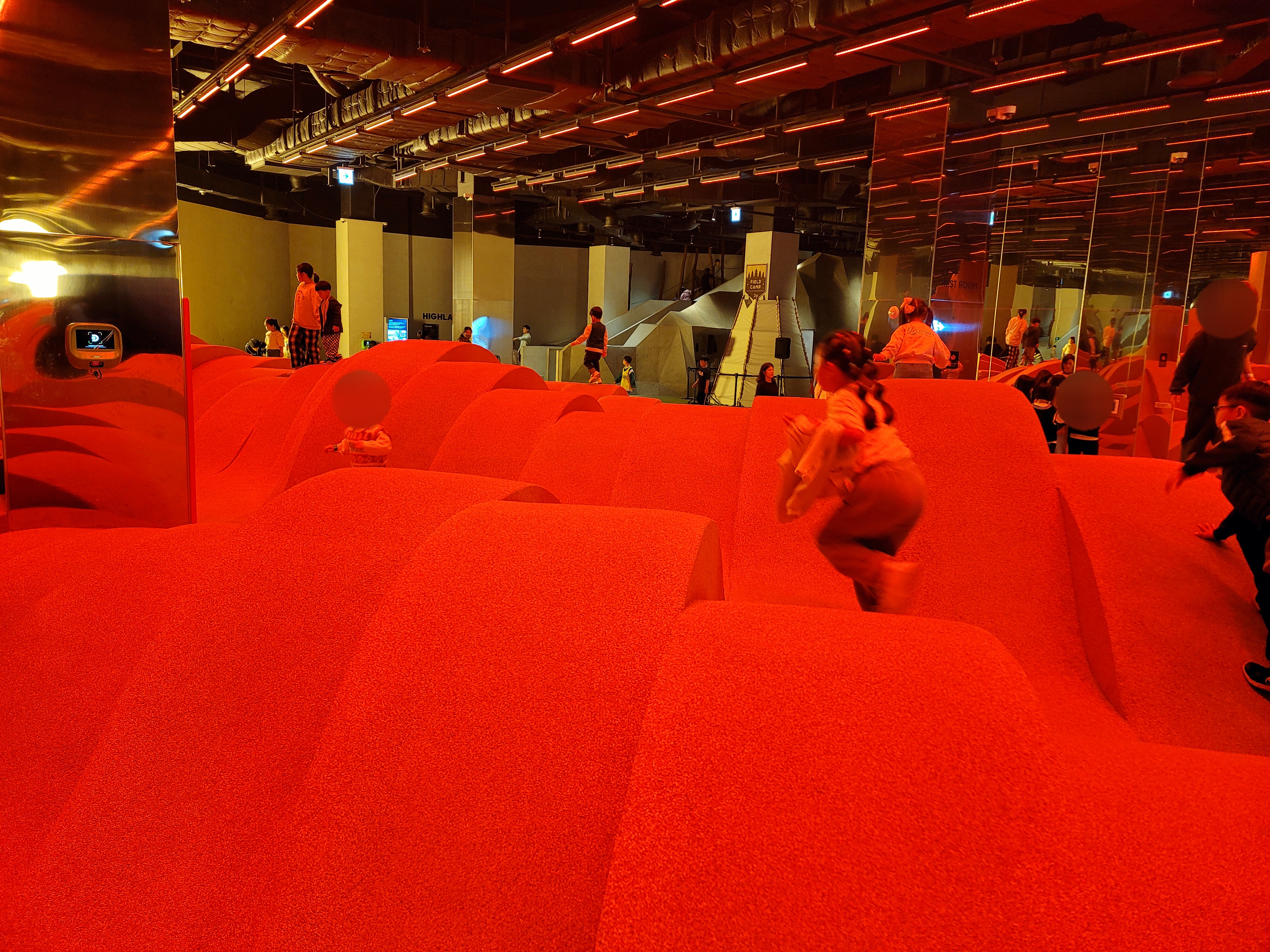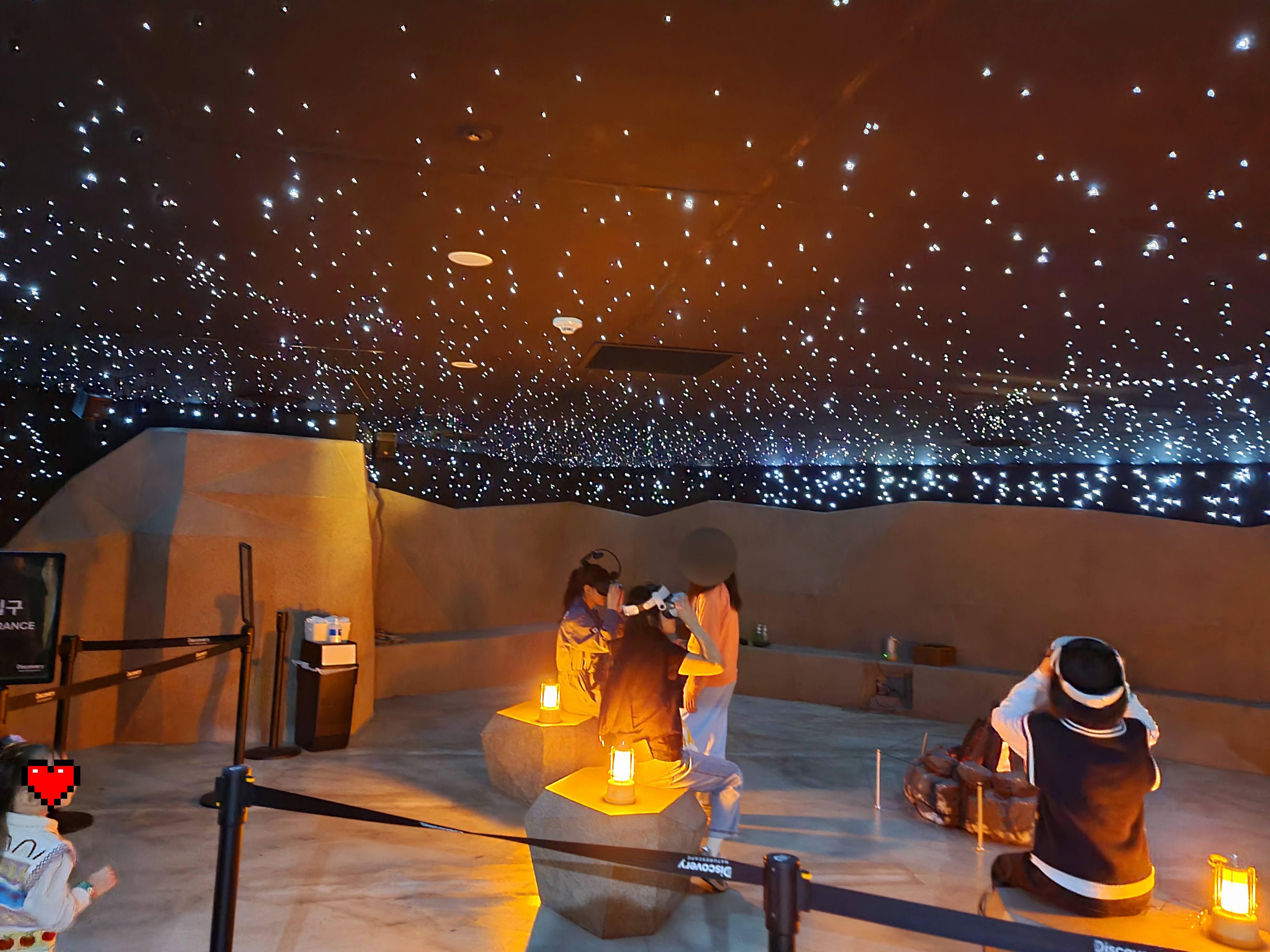 주말이라 아이들이 바글바글 했어요. 조명도 사막도 빨간색이라 왠지 모르게 긴장이 되는 이 곳! 중간 중간 바코드와 D포인트를 쌓을 수 있는 기계들이 있는데 바코드는 안드로이드 유저인 저만 가능했습니다🤳🏻