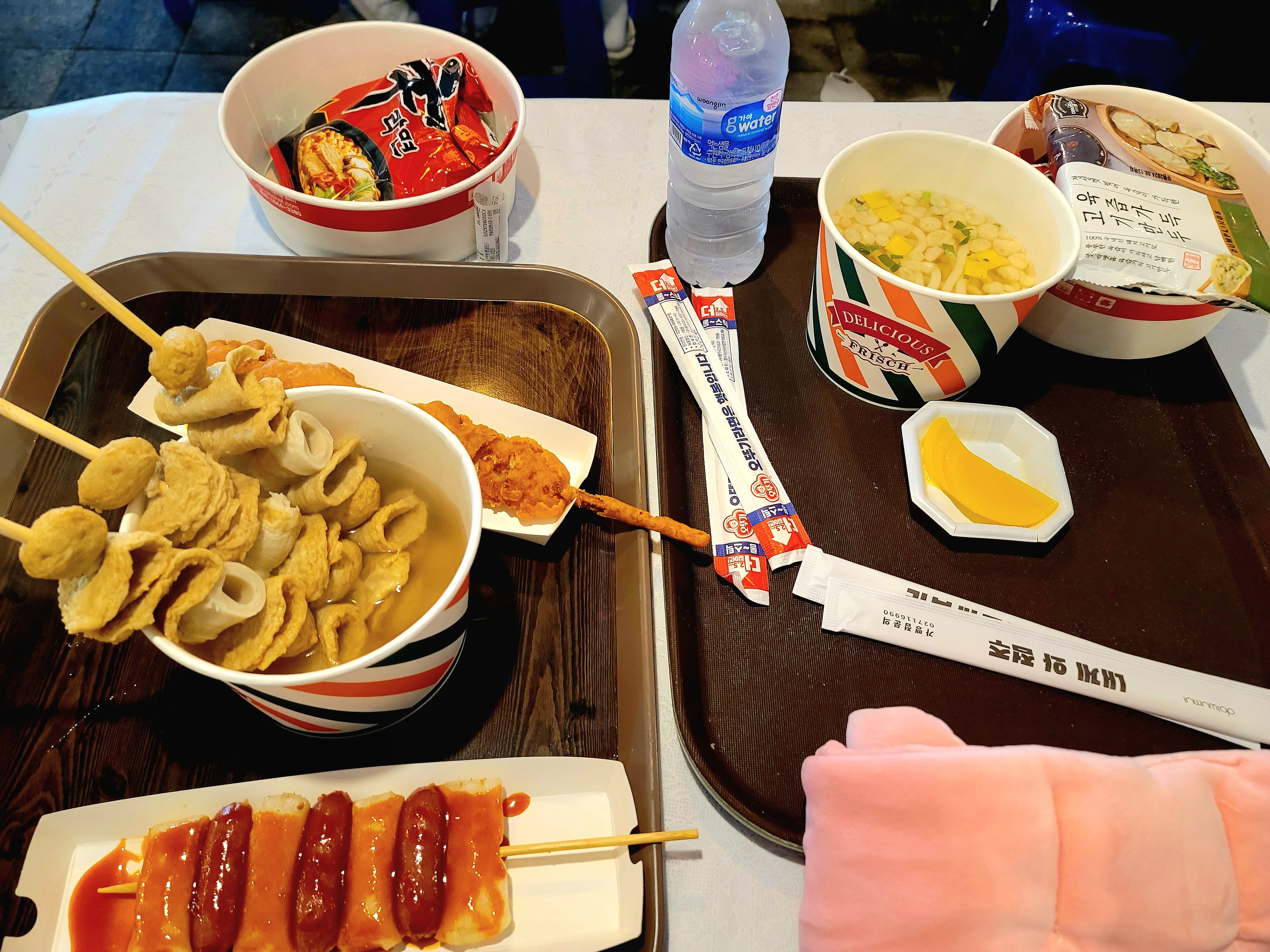저는 라면, 우동, 어묵, 닭꼬치, 소떡소떡, 만두를 주문해 보았습니다. 진짜 눈 돌아가게 배고팠거든요.