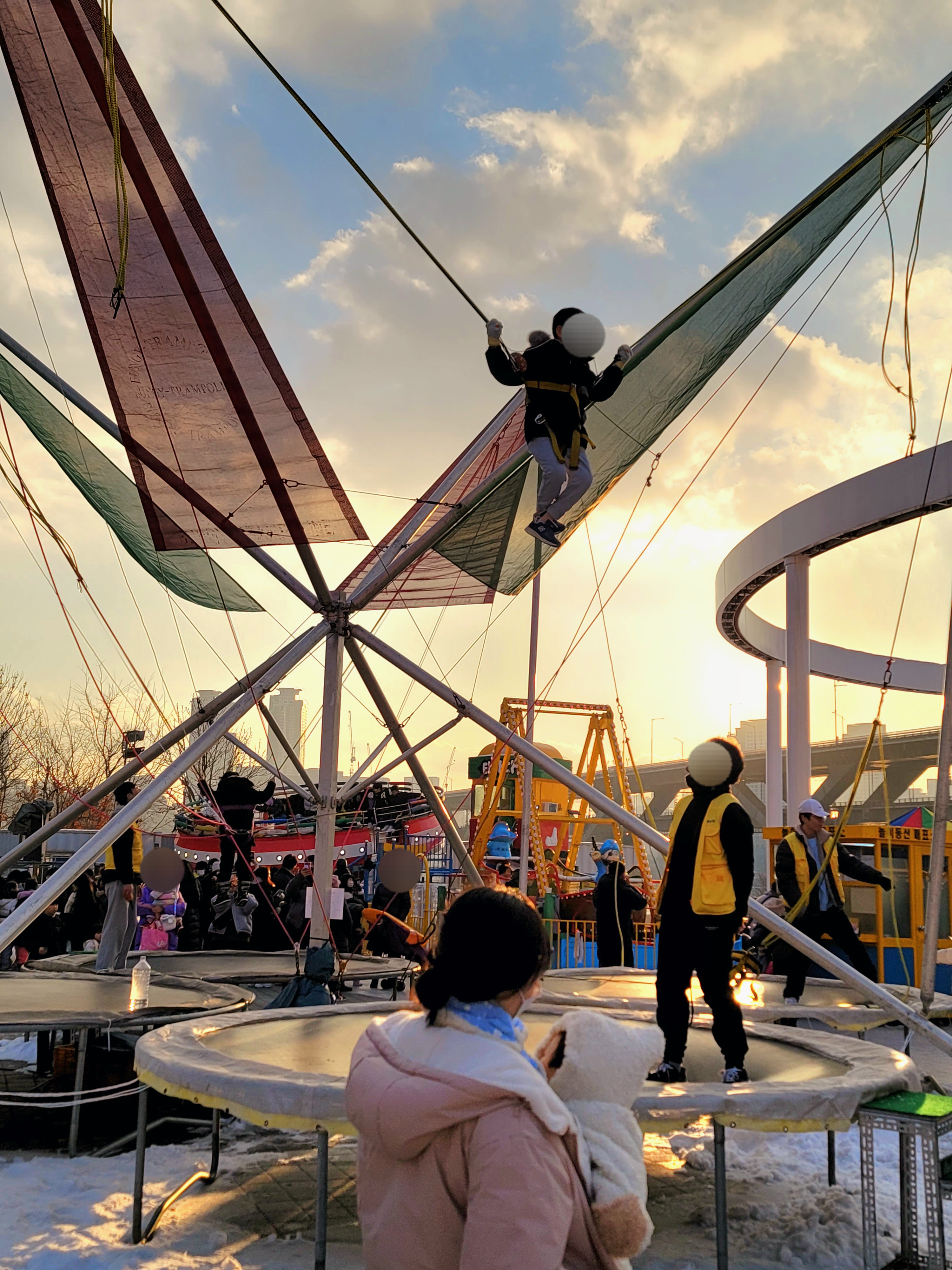 사진은 유로번지에요. 47개월 아이도 했습니다. 안전요원 분께서 장비를 튼튼하게 채워주시고 옆에서 계속 함께 해주시니 더욱 든든했네요. "낮게, 높게?" 난이도를 물어봐주시고, 너무 높아 아이가 무서워하면 조금 낮게 해주시는 등 아이에 맞춰 진행을 해주셔서 감사했습니다.