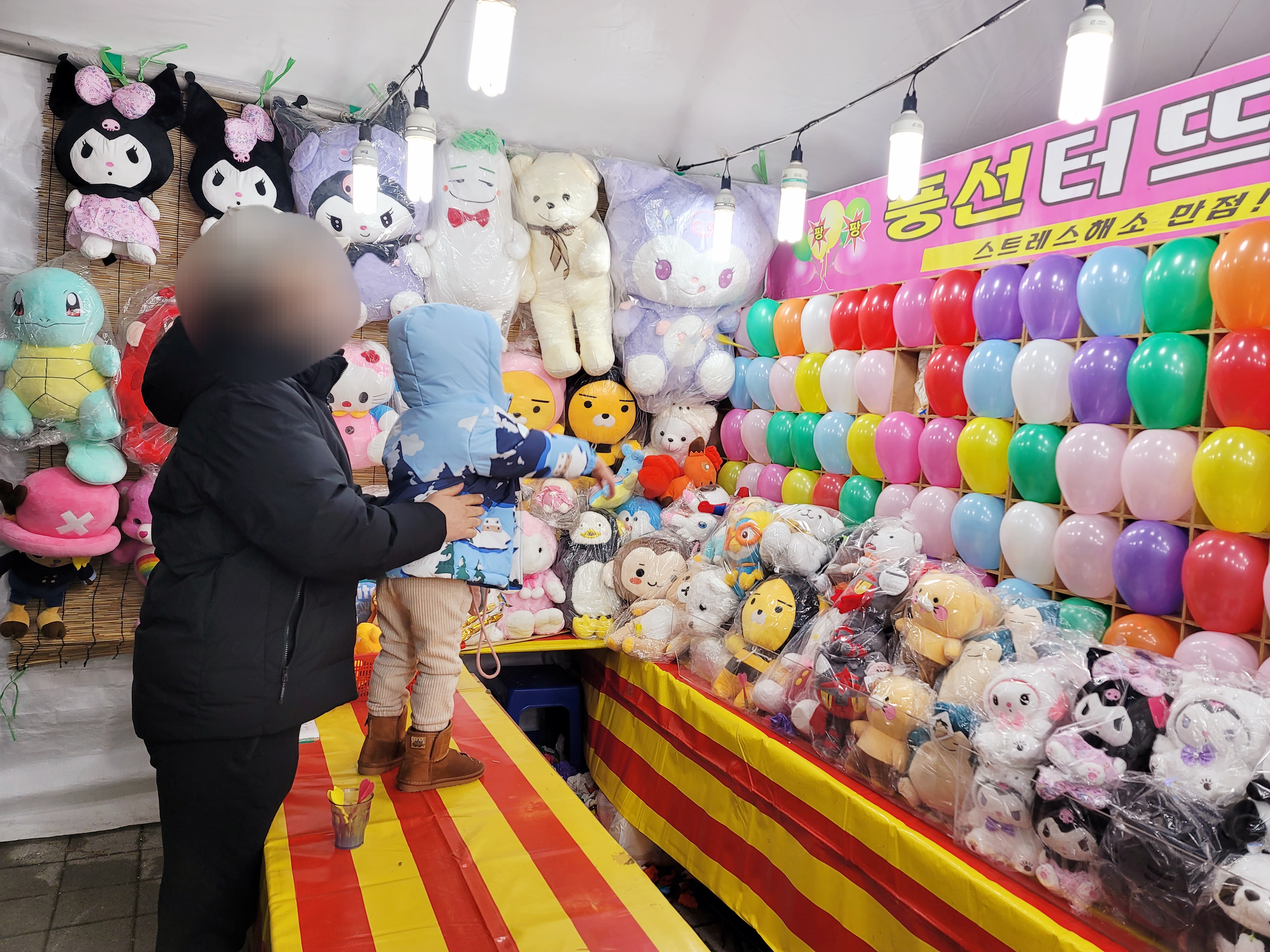 빙어잡기체험장 옆에 있는 풍선 터뜨리기입니다. 다트 한 바구니(5개)에 5,000원이에요.