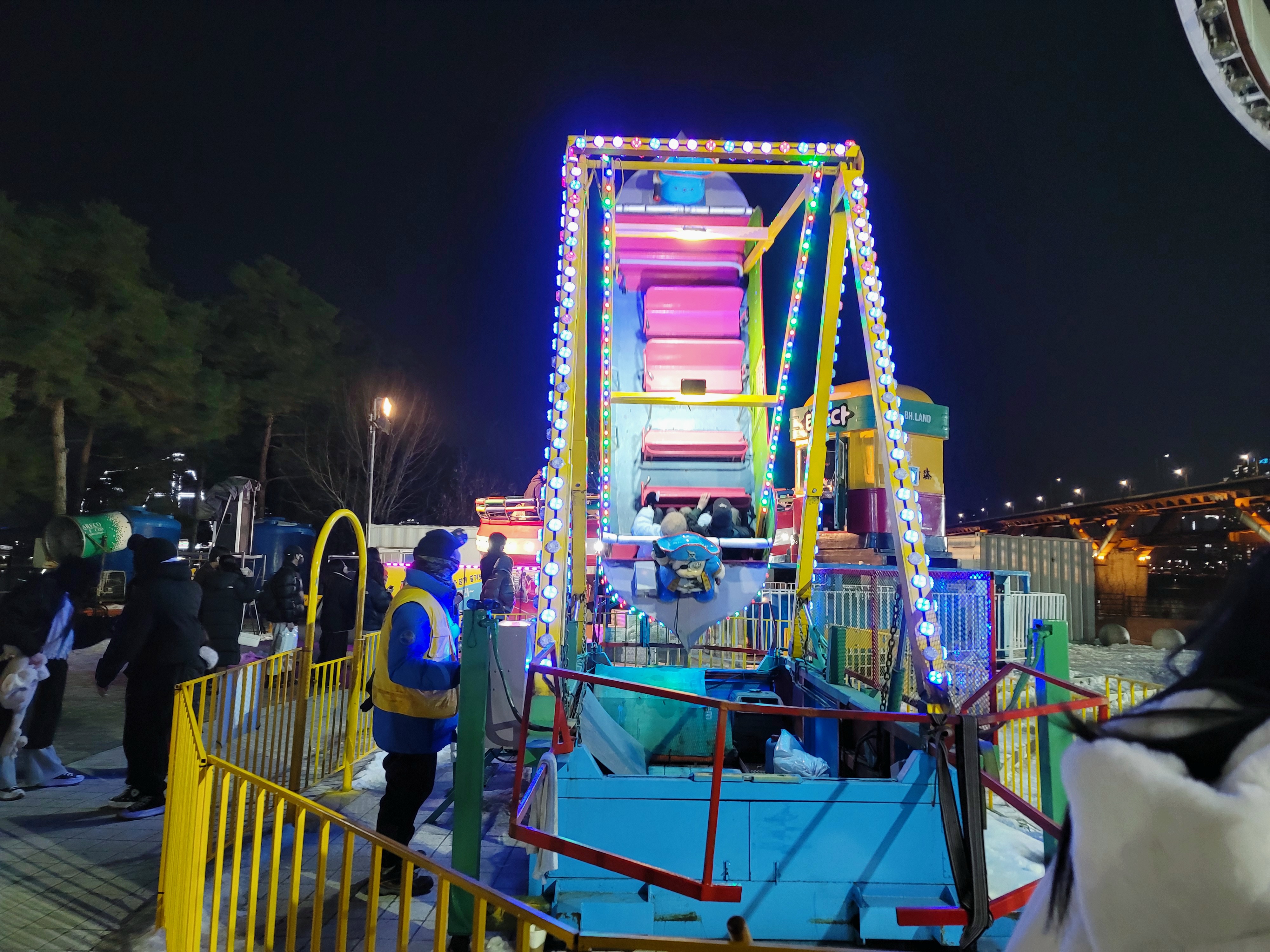 시간이 가면 갈수록 추워져서 썰매만 타고 있을 수가 없었어요. 마침 아이도 싫다고 하니 이번에는 다른 놀이기구를 타보기로 했죠.