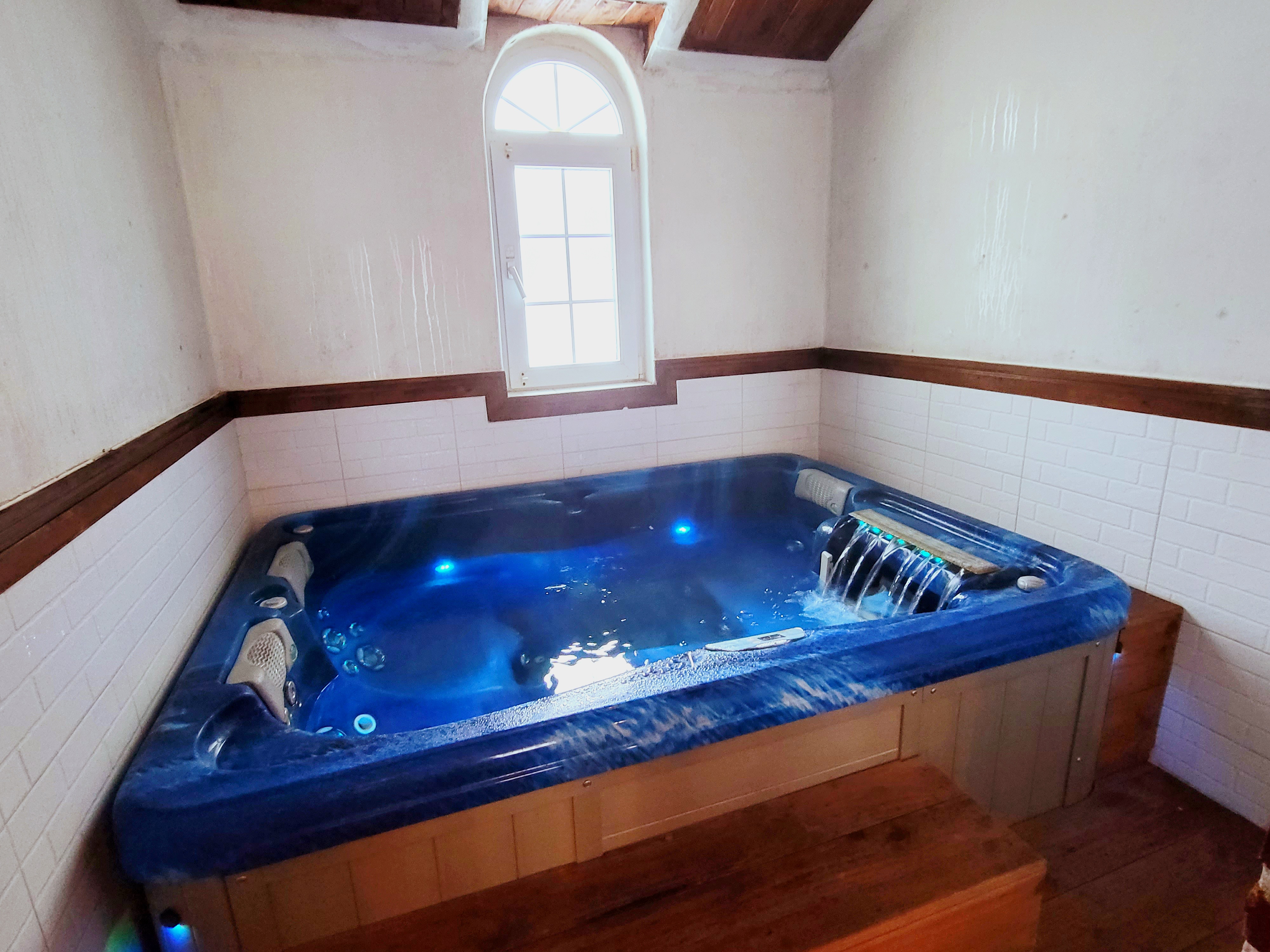 스파입니다. 아이와 함께 하고 싶어서 미리 신청한 거예요. 미리 알려드렸다시피 금액은 30,000원이었고요. 첨벙첨벙 물장구를 치면 계단에 전기가 올라 위험하다고 하셔서 조심히 이용했습니다. 불을 끄고 봐야 더 예쁜데 제가 센스가 없었네요.🤦🏻♀️